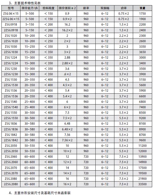 1、型號(hào)編制說明:2、ZSG系列高效重型振動(dòng)篩的分類及用途: