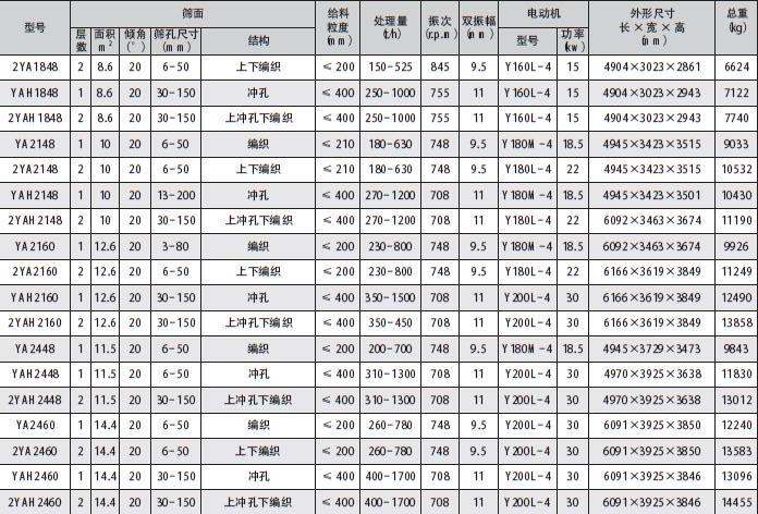 YA型圓振動篩運(yùn)點(diǎn)軌跡為圓,可廣泛應(yīng)用于選煤選礦、砂石、建材、煤炭等行業(yè)作為分級物料的通用設(shè)備。YA型圓振動篩結(jié)構(gòu)類型