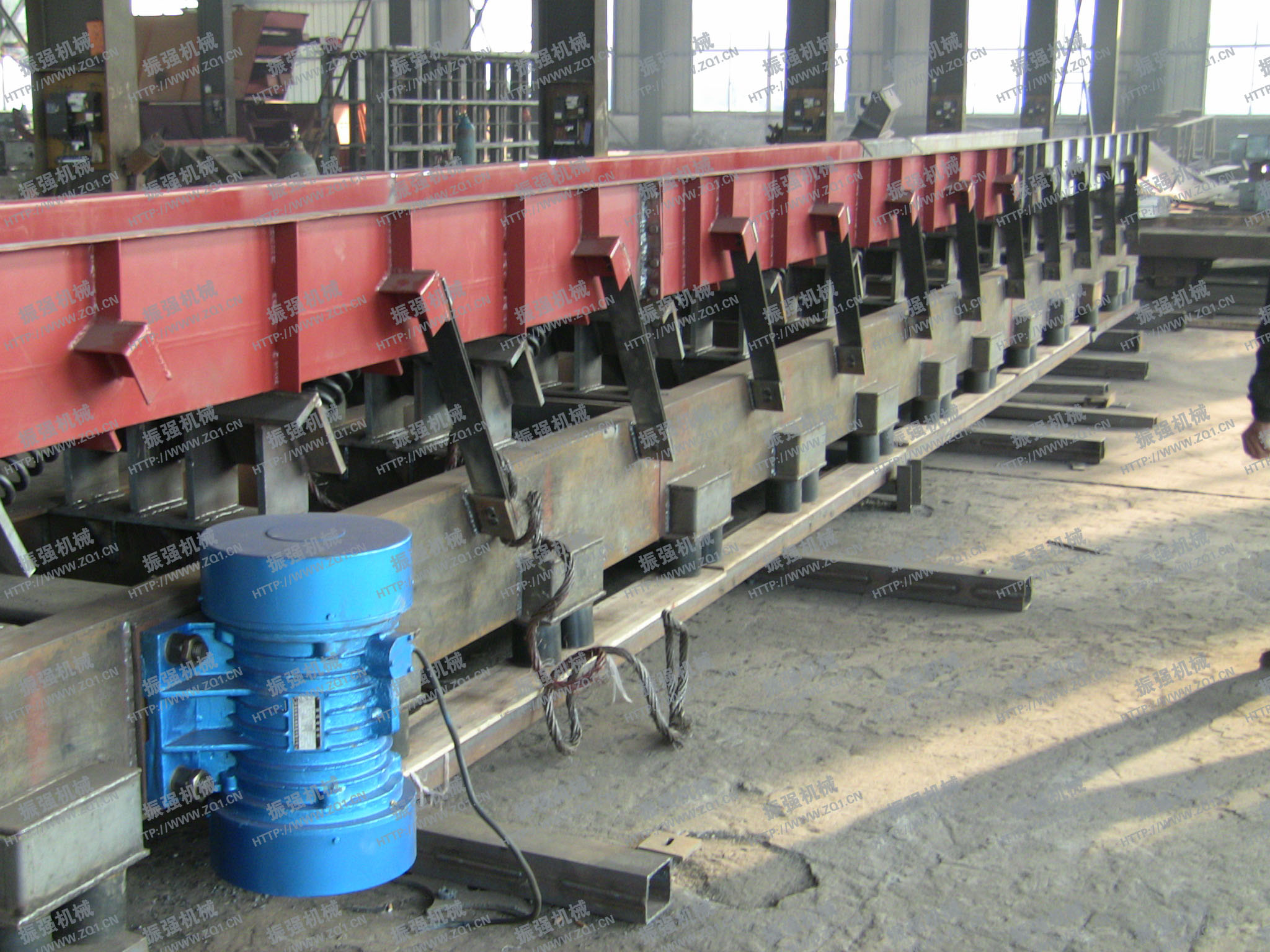 - SZF型慣性振動(dòng)輸送機(jī)采用兩臺振動(dòng)電機(jī)作為激振動(dòng)源,運(yùn)用自同步原理,兩臺振動(dòng)電機(jī)反向轉(zhuǎn)動(dòng),使輸送機(jī)底部平衡架產(chǎn)生往復(fù)振動(dòng),經(jīng)過主振簧與導(dǎo)向板簧的作用,帶動(dòng)上部輸送槽振動(dòng),從而達(dá)到輸送物料的目的。該機(jī)是一種通用輸送機(jī)械,除用于水泥行業(yè)外,還可用于冶金、礦山、化工、電力等行業(yè),是一種理想的新型輸送設(shè)備。